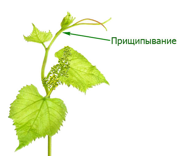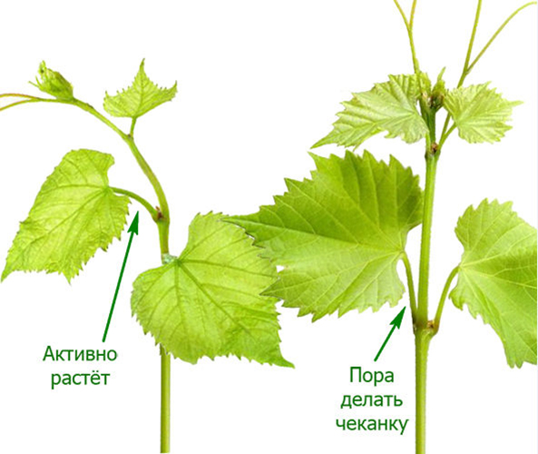 Embossing is the removal of the top of the shoot with 5–8 upper leaves so that the vine has time to ripen before frost. The time of the procedure is determined by the development of the vine. If its top is straightened, then the intensive growth of the vine has stopped. The growing point (top) is removed so that the processes of preparation for winter begin.