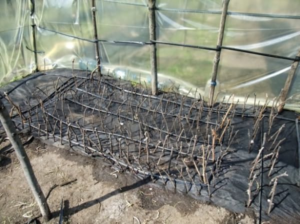 - Spruce branches. First, it is laid on the ground, and a vine is placed on top of it. Pinned to the ground. Cover with spruce branches on top. When snow falls, it will serve as additional insulation.