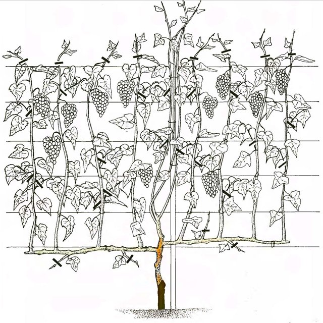 The stem usually has 2-3 "sleeves" (branches carrying clusters), on each of which 3-4 powerful bunches are left - it is not recommended to overload the variety. Inflorescences and grape clusters are evenly distributed over the shoots, leaving the strongest clusters in the lower part of the vine, avoiding increased stress on the upper shoots. The vine grows up to 3-4 m.