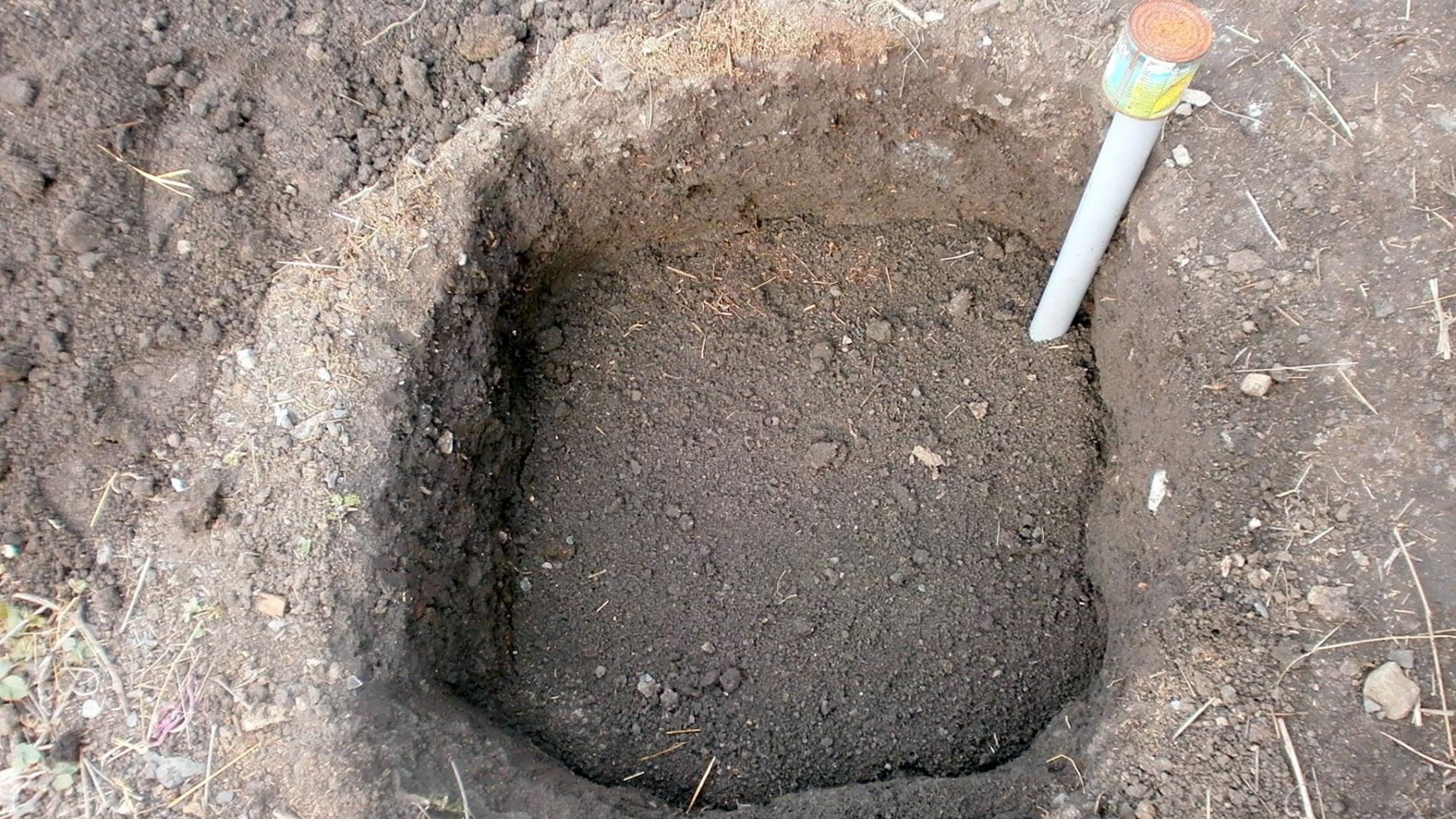 - A pit 80 × 80 × 100 cm is laid on the prepared site.