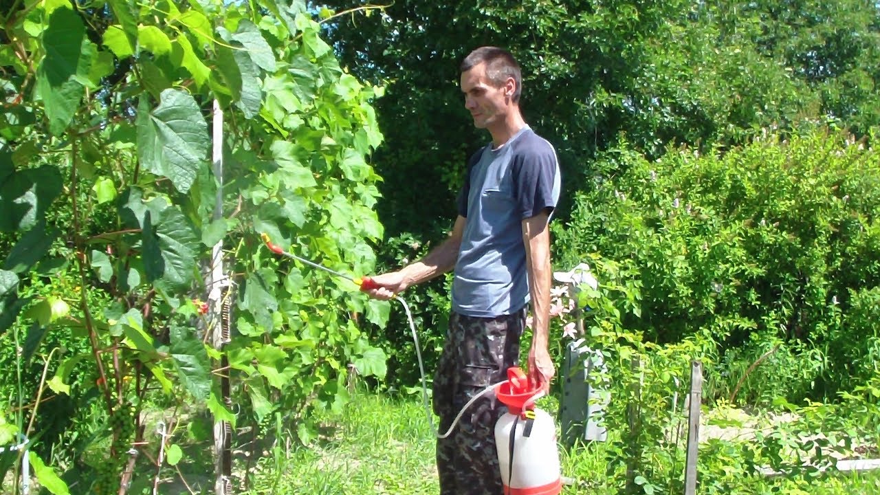First of all, in April - May, the vineyard is sprayed with a solution of colloidal sulfur from oidium and Bordeaux liquid to fight fungal diseases.
