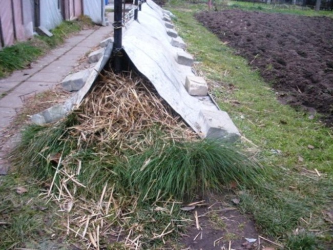 As a shelter for grapes for the winter, spruce branches or hay are suitable, closed on top with spunbond and slate