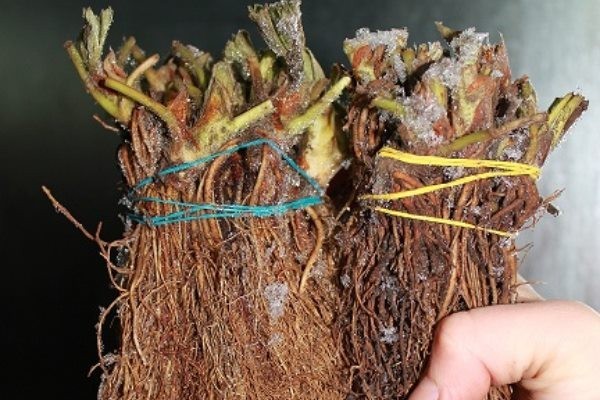 To provide planting material throughout the year, the ingenious Dutch have come up with a special technology called frigo. It consists in the fact that in late autumn, rooted rosettes of strawberry whiskers with a well-developed root system are harvested on plantations, while all the leaves are removed, leaving the bud, petioles and small leaves intact. Such seedlings are tied in bundles, placed in plastic bags, which are placed in boxes and placed in refrigerated chambers for storage at a temperature of -1.5-2 ° C. In this state, they can be stored for up to one year.