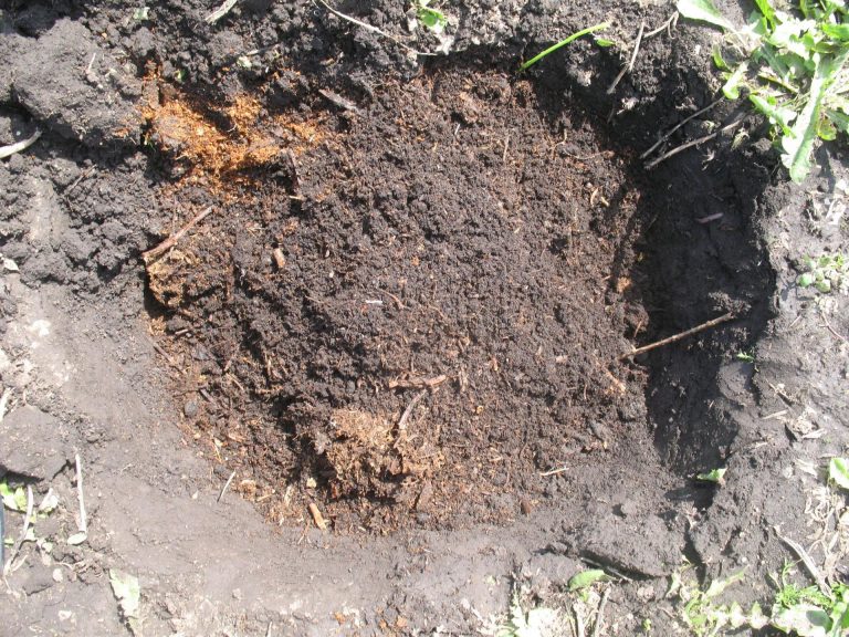 - We prepare a nutrient mixture from the top layer of the removed soil by adding 1.5–2 buckets of compost, 1–2 liter cans of wood ash and 100 grams of superphosphate. Mix well.