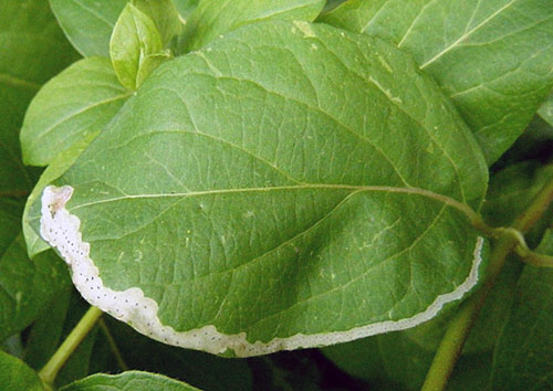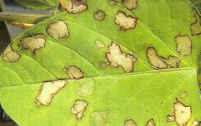 The disease is caused by fungi. Greyish spots with a white center appear on young foliage. After the leaves, shoots are affected. The onset and spread of the disease is facilitated by high humidity and low air temperatures.