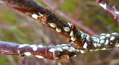 Most often, plants growing in the shade are affected by powdery mildew. The branches seem to be sprinkled with ash. The affected shoots should be removed and burned, and the bushes should be treated with fungicides.