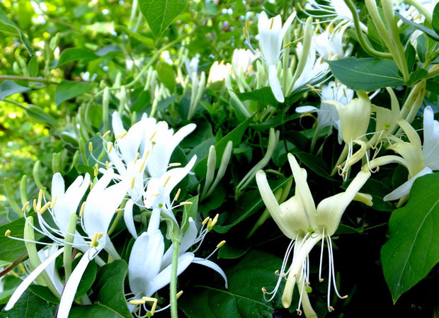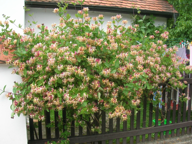 - honeysuckle with a short flowering period will look good next to climbing roses and clematis.
